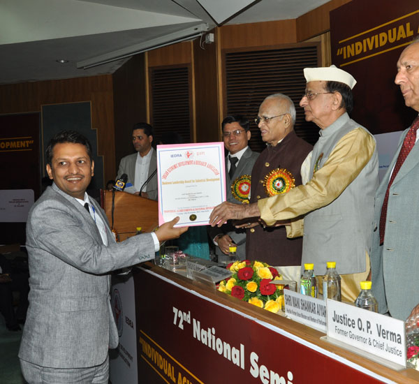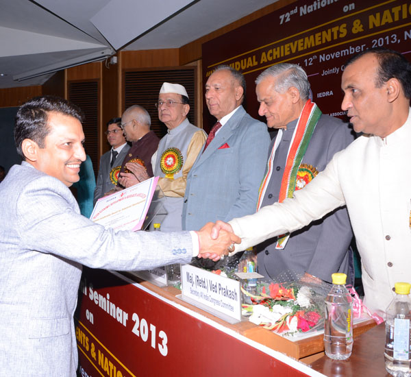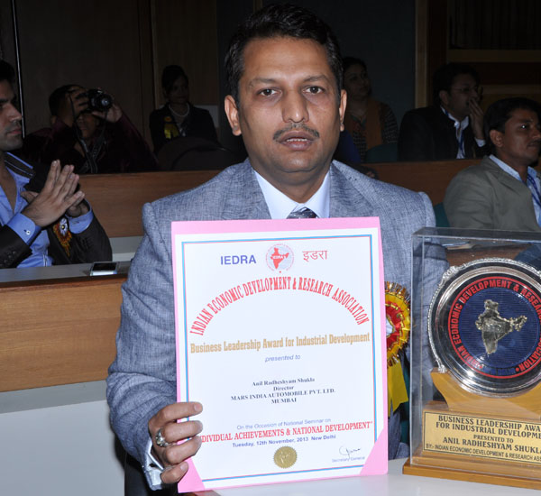 Mr Anil R. Shukla, Director of Mars India Automobile Pvt Ltd, receives award at the 72nd National Seminar 2013 on INDIVIDUAL ACHIEVEMENTS
